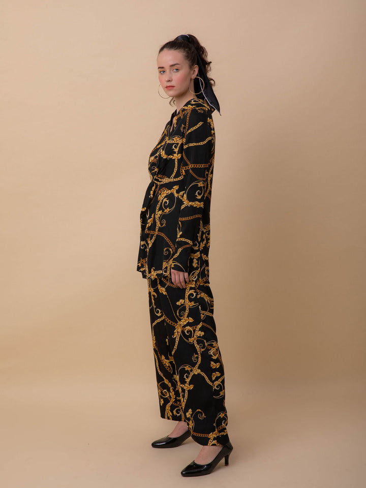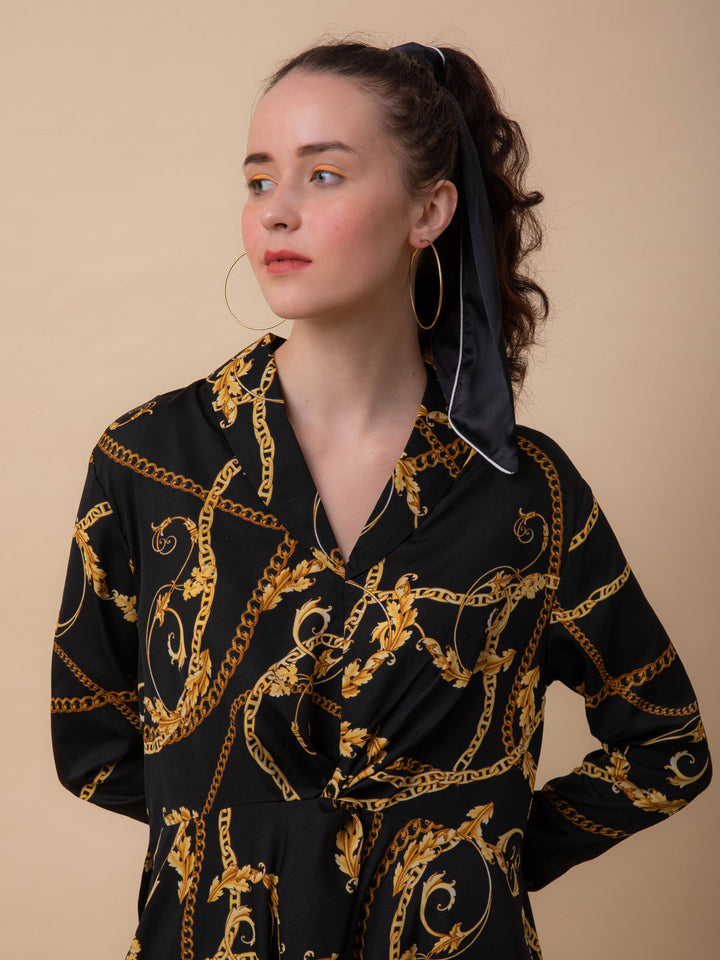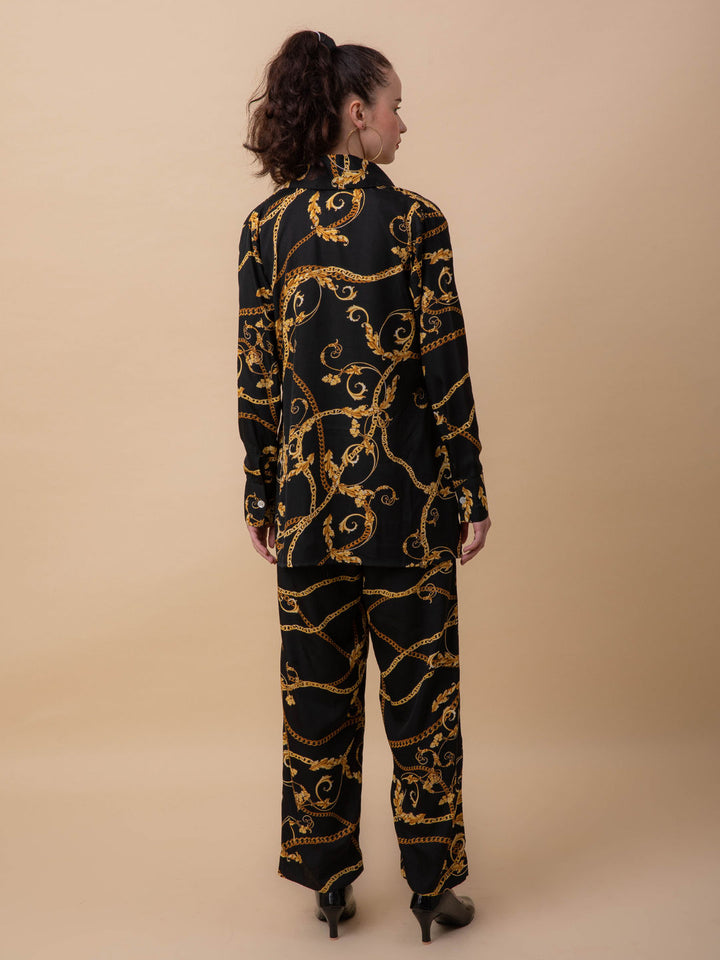 Black Chain Print Knot Top and Pyjama (Set of 2)