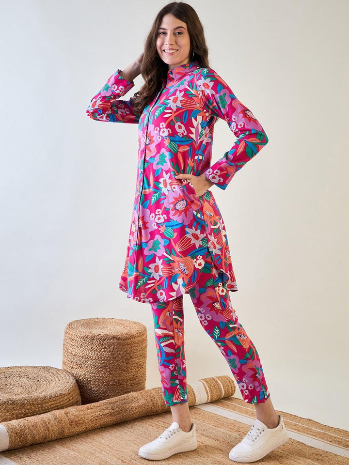 Floral Fuchsia Shirt Co-Ord (Set Of 2)