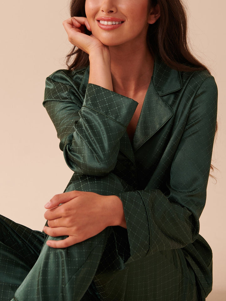 Jacquard Satin Pajama - Green (Set of 2)