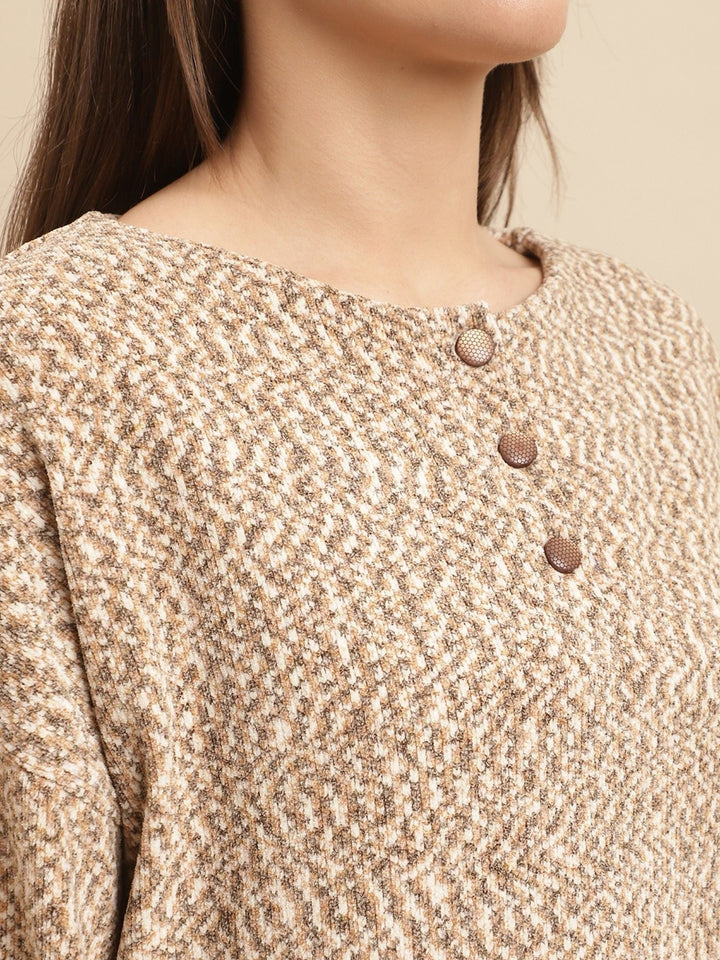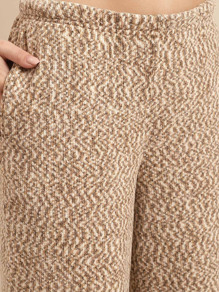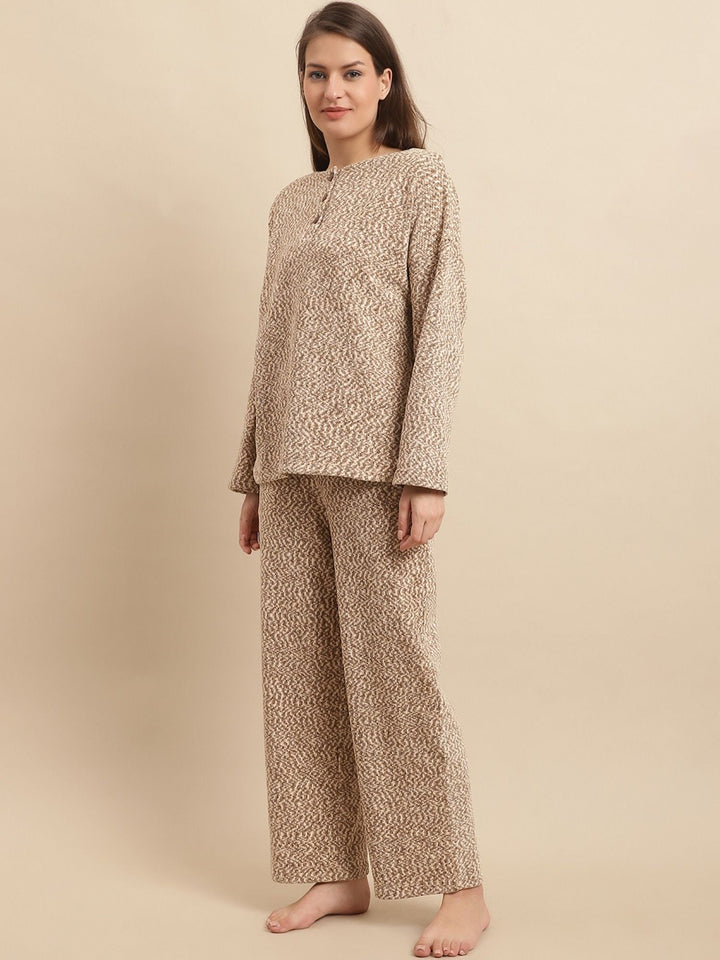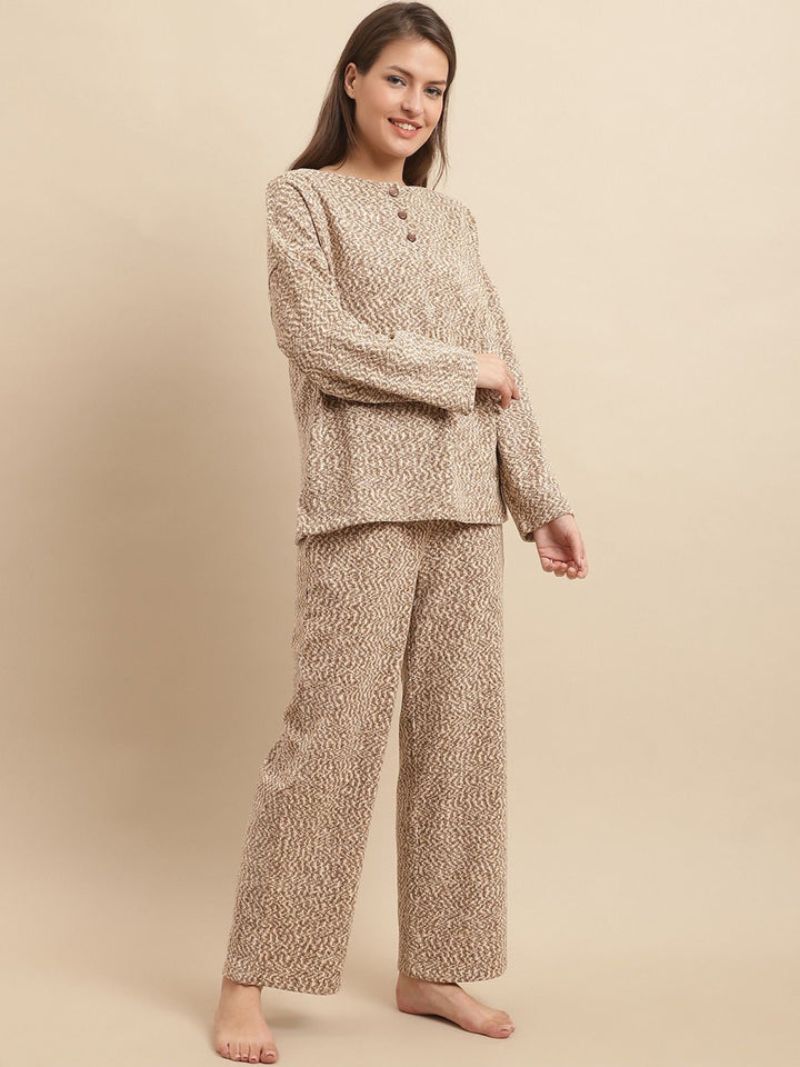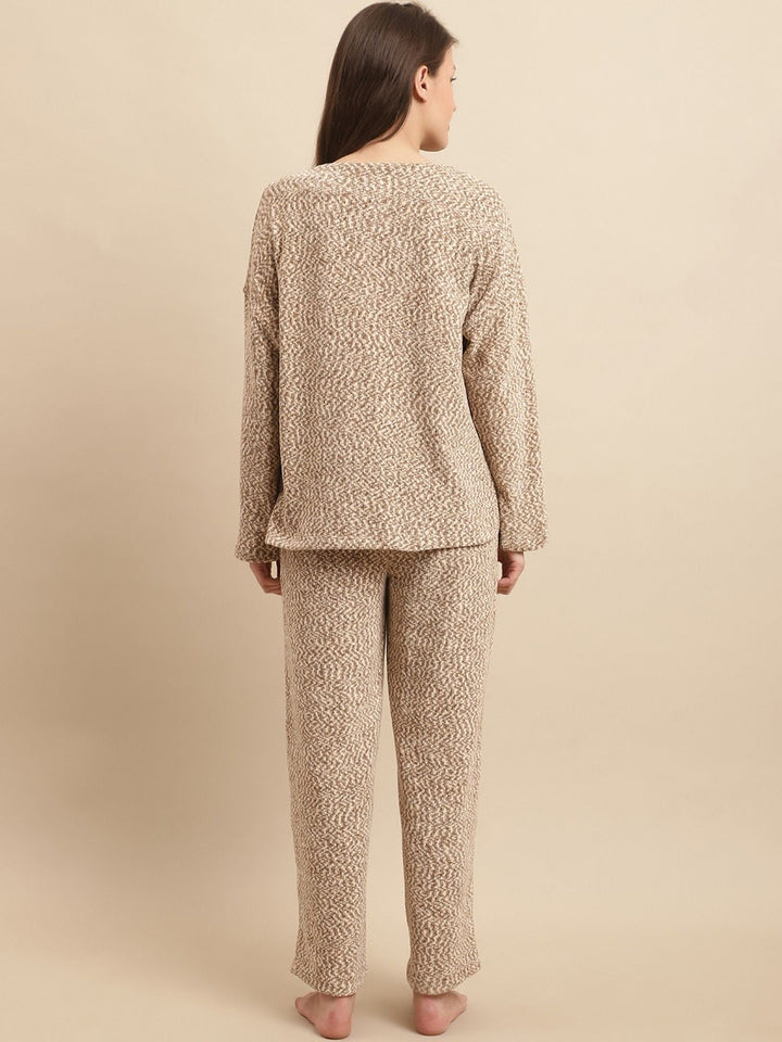 Jacquard Winter Wear Long Night Suits-Beige (Set of 2)