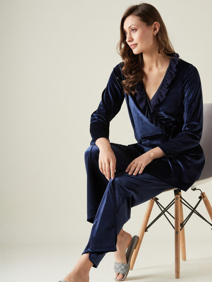 Navy Velvet Wrap Top Lounge (Set of 2)