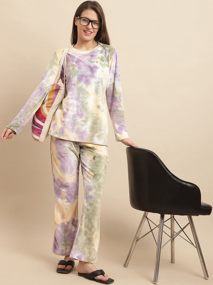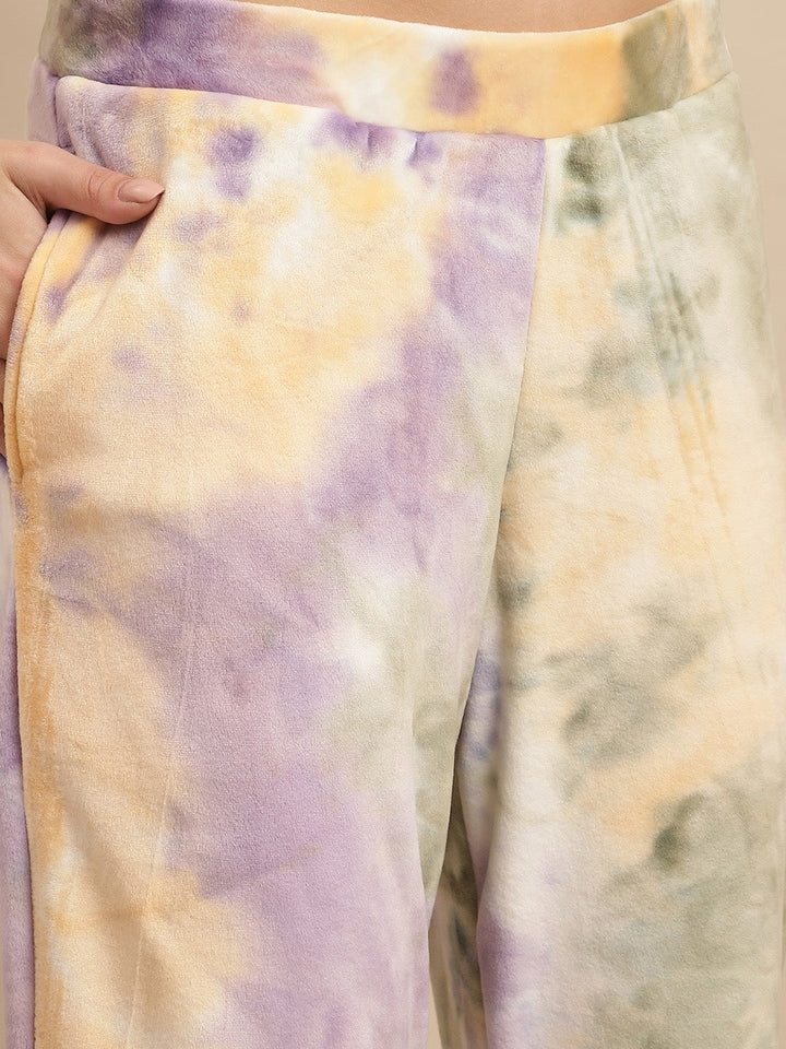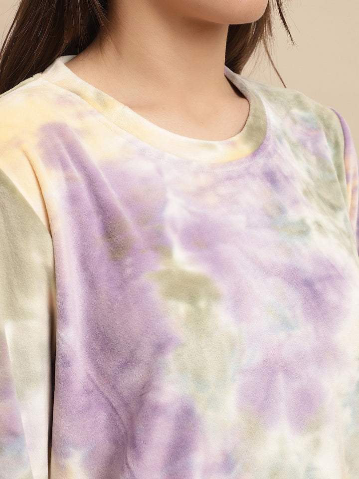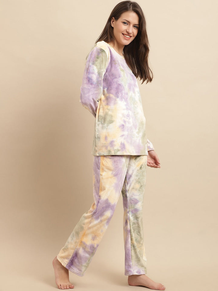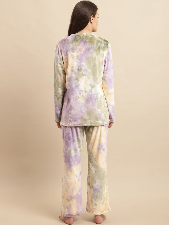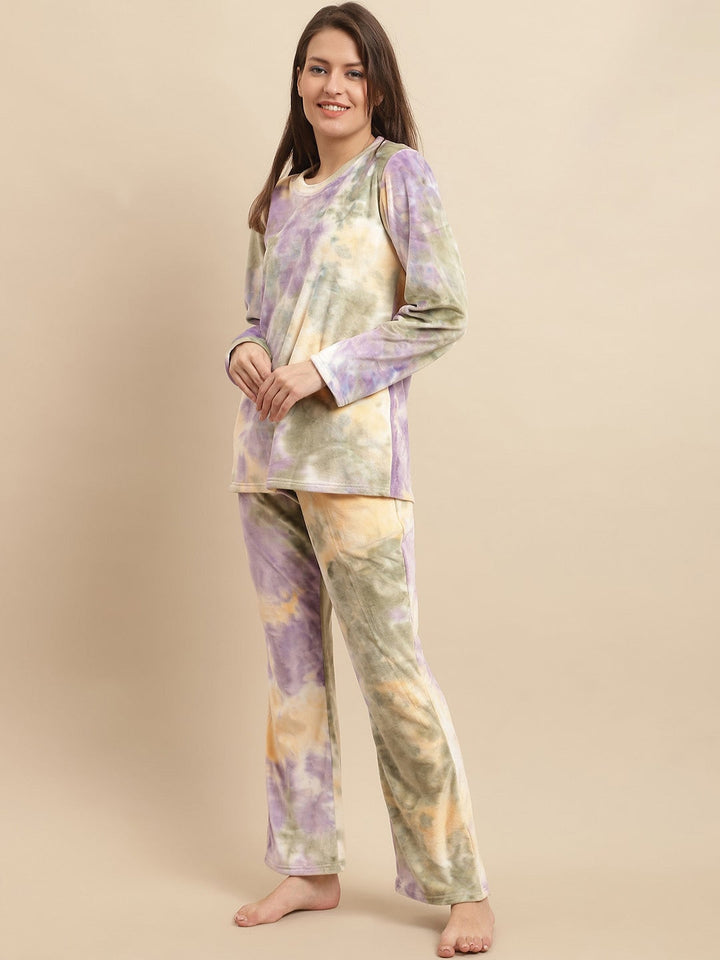 Purple Tie and Dyed Long Sleeves Velvet Night suit