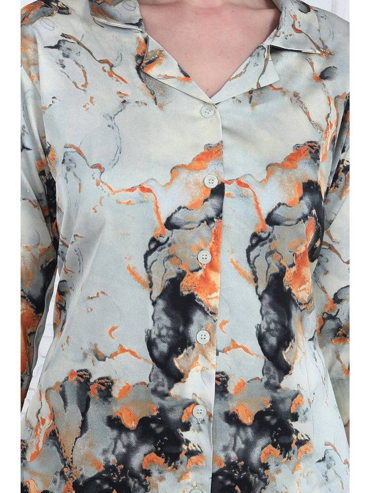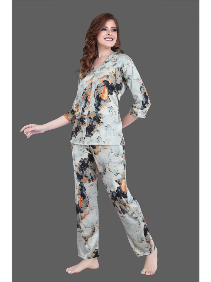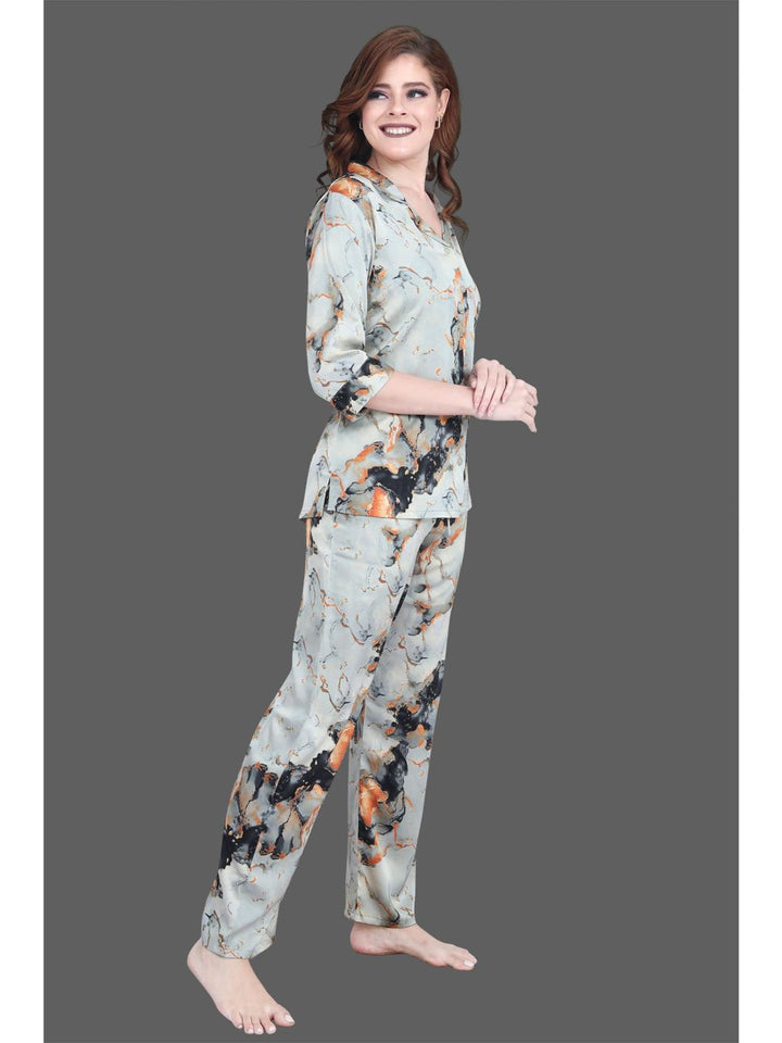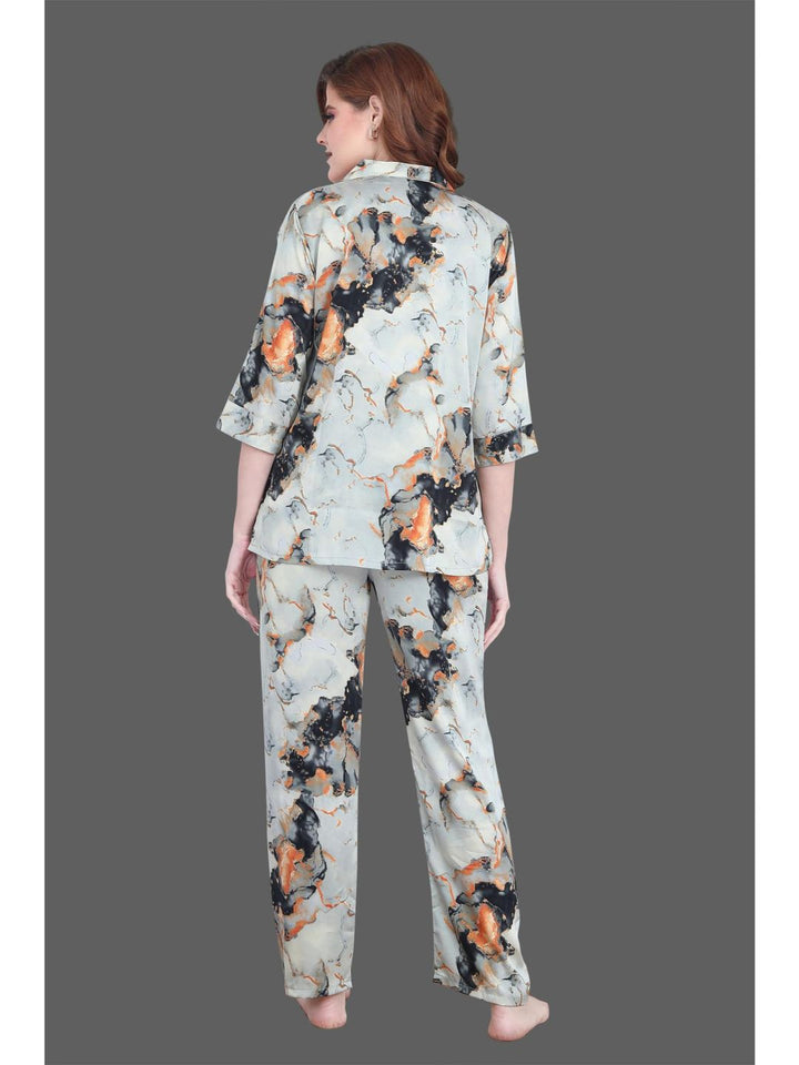 Stunning Multi-Color Satin Print Night Suit (Set of 2)
