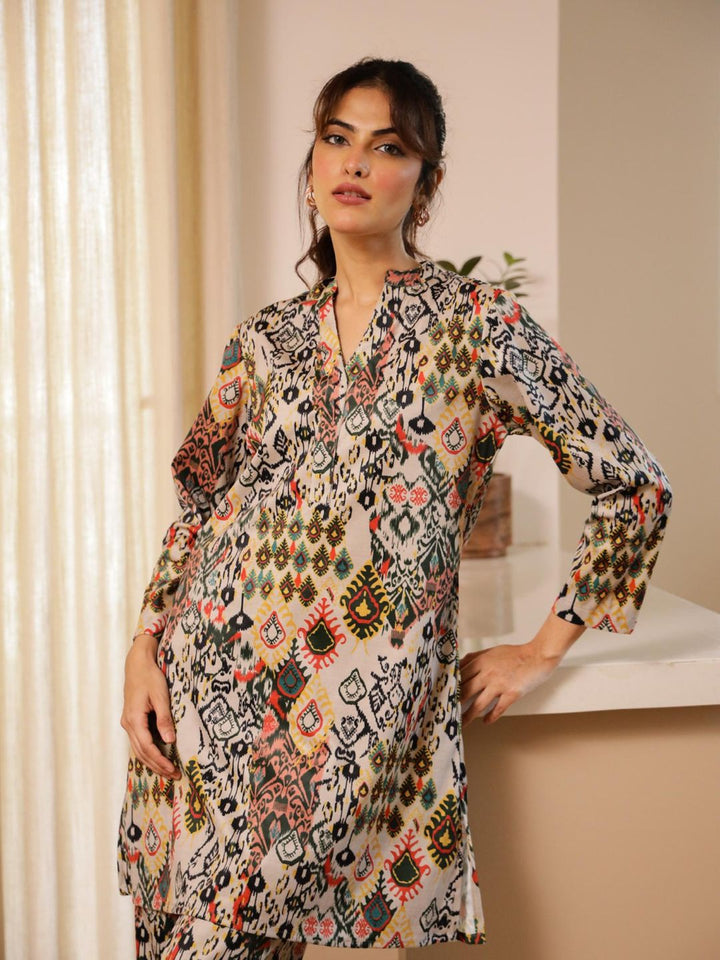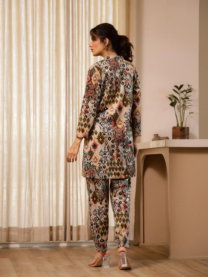Women Abstract Multi-Color Winter Wear Night Suit (Set of 2)