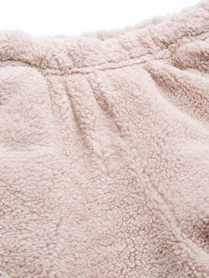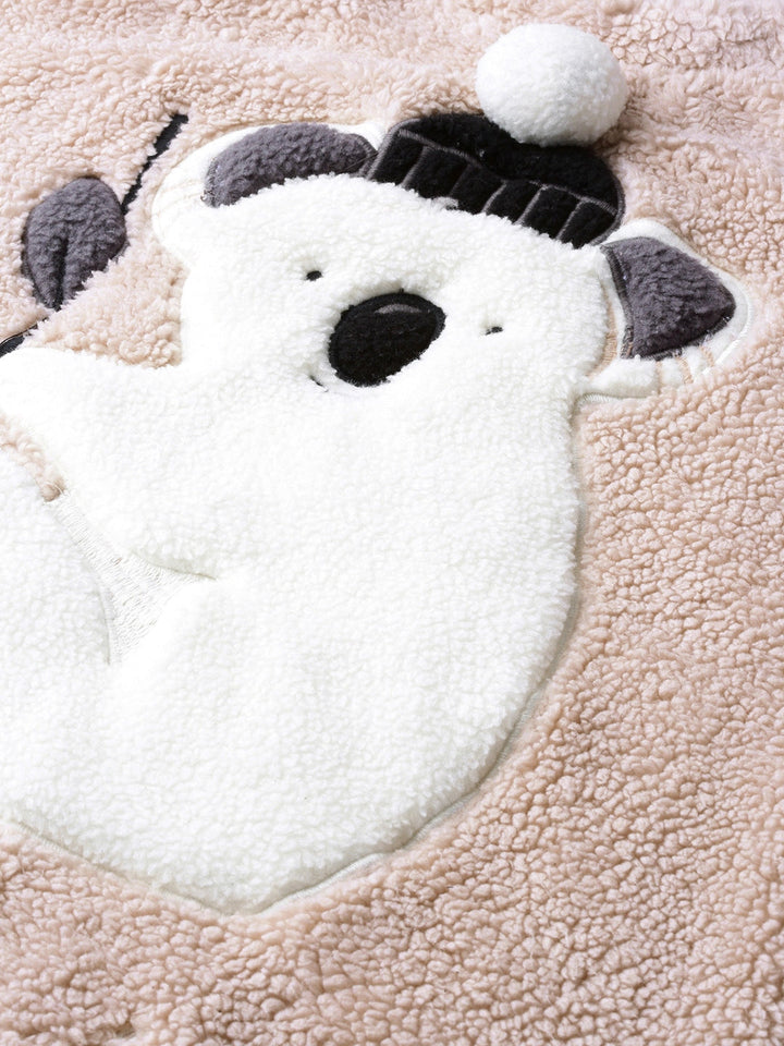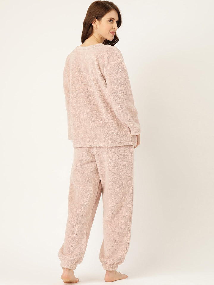 Women Peach-Coloured Applique Detail Fleece Winter Night Suit with Eye Mask