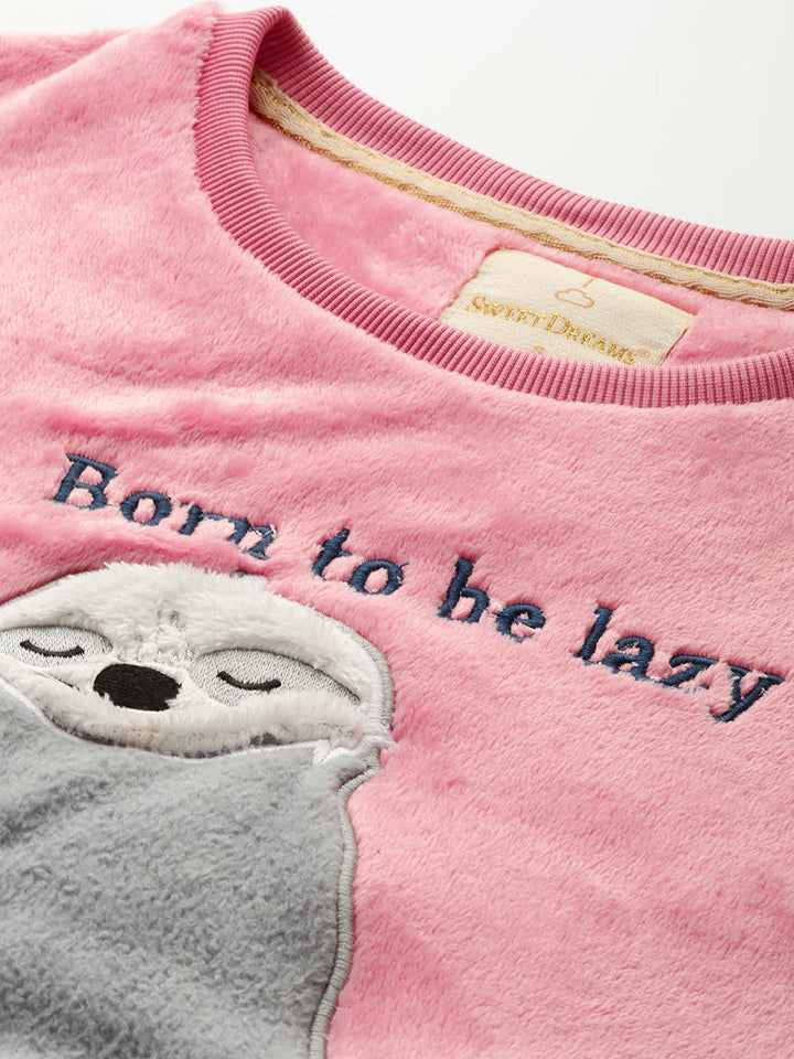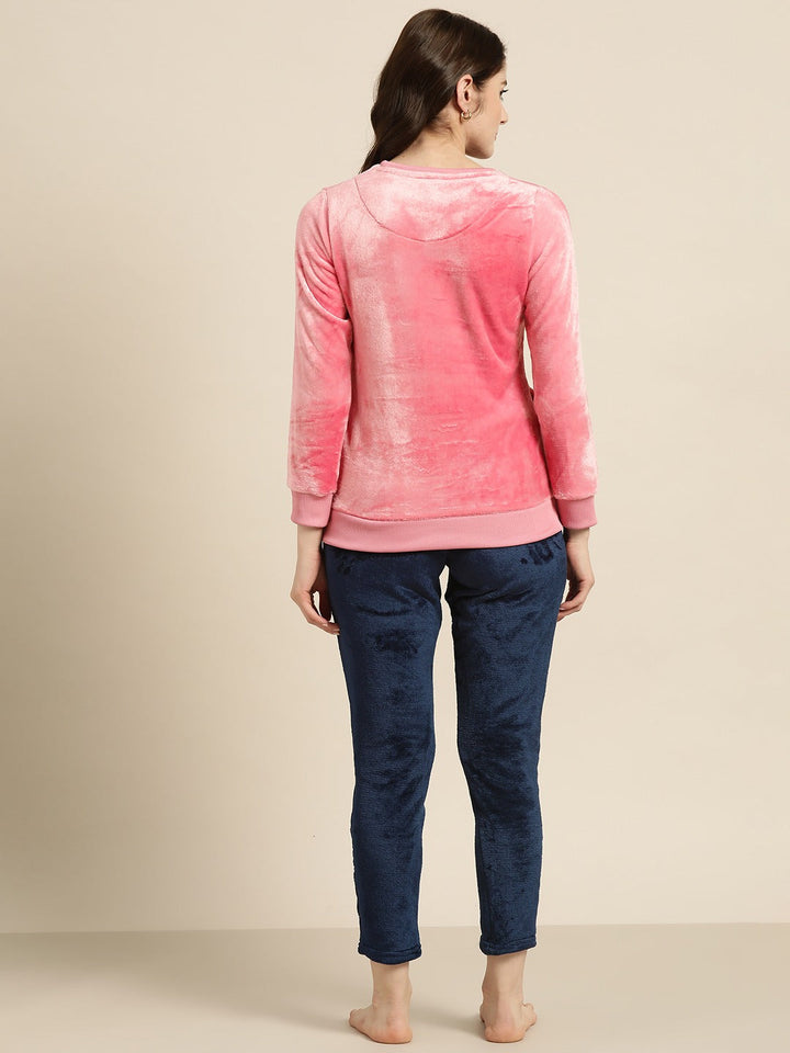Women Pink & Navy Blue Printed Fleece Night suit