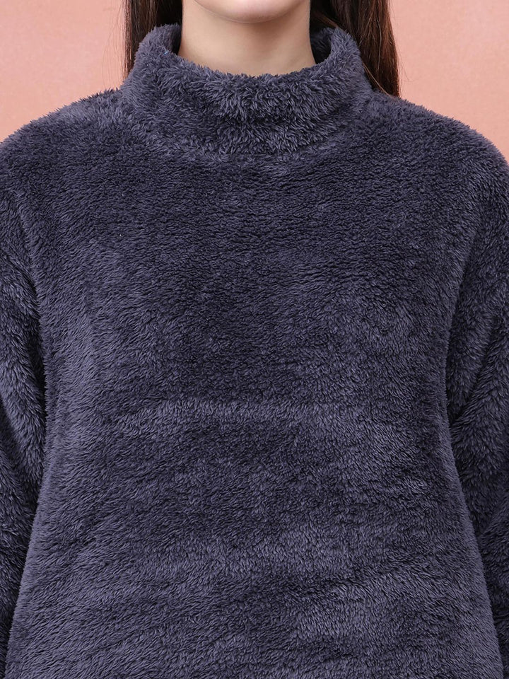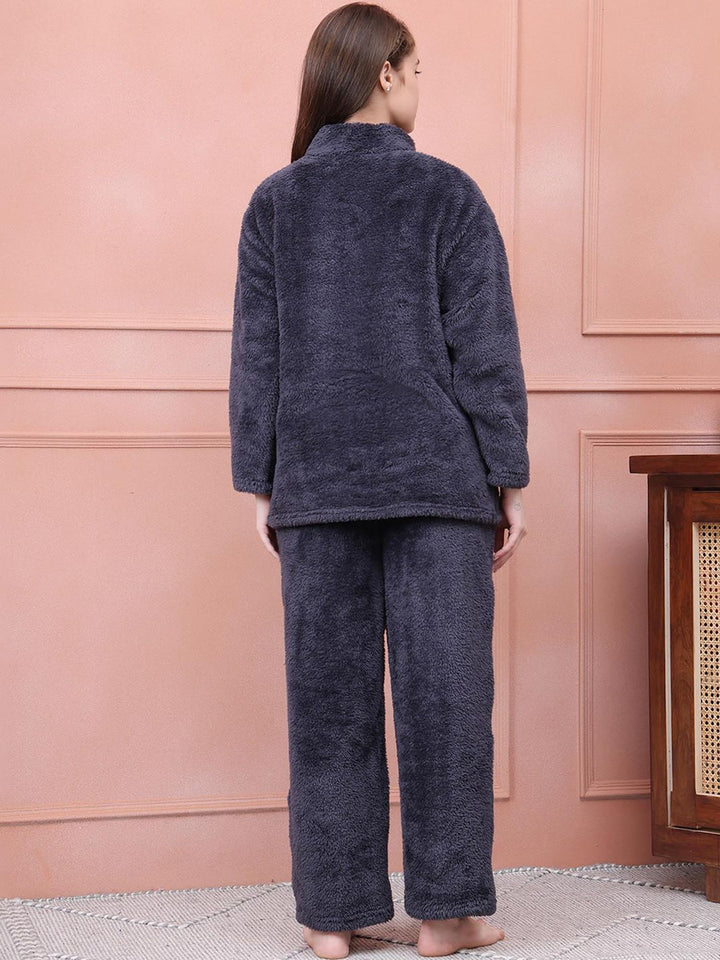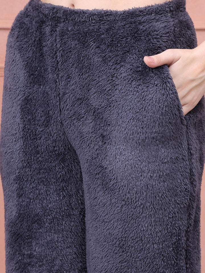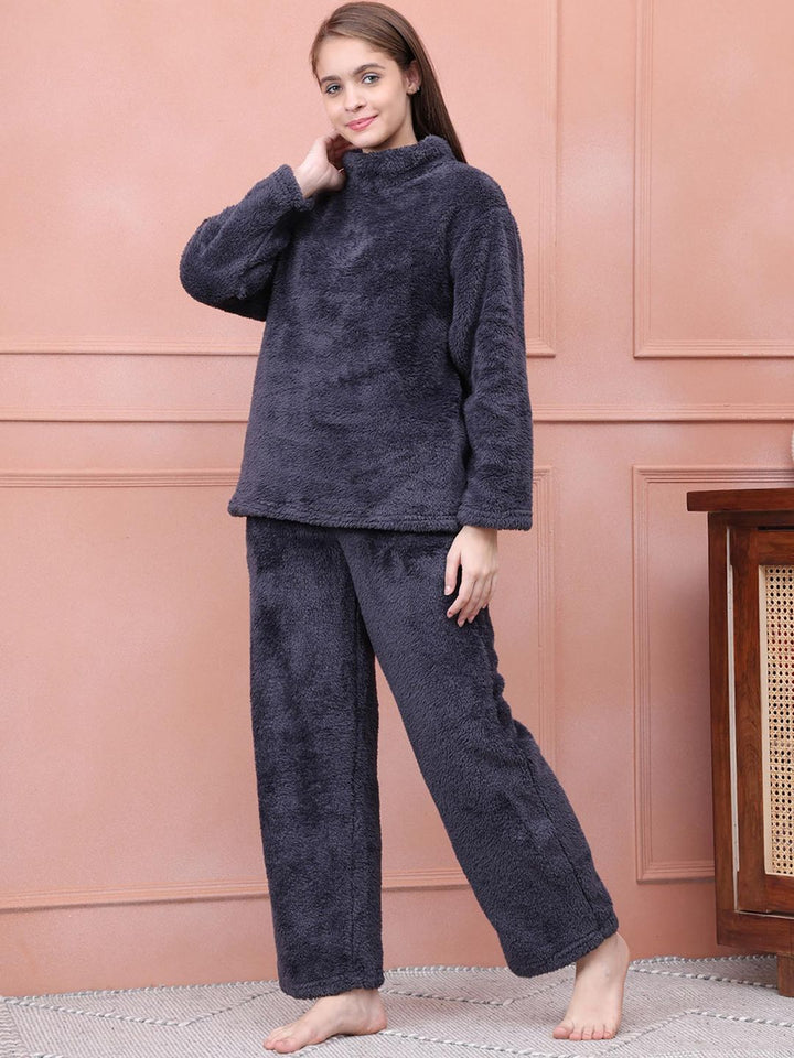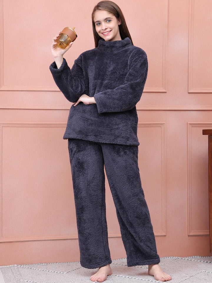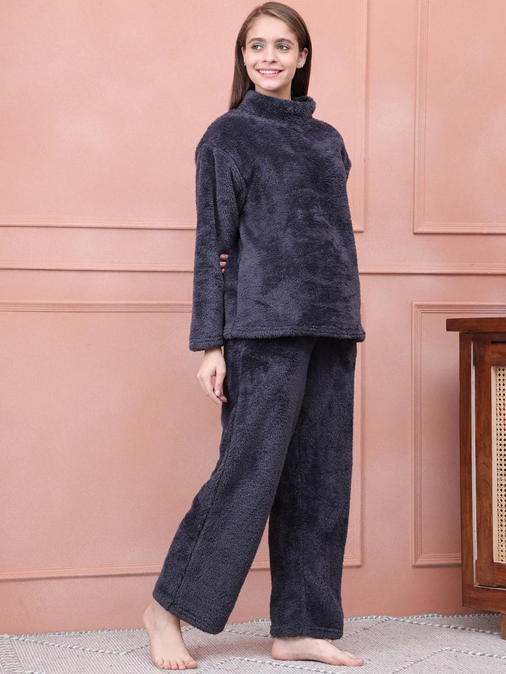 Women Winter Textured Charcoal Top with Pajama (Set of 2)