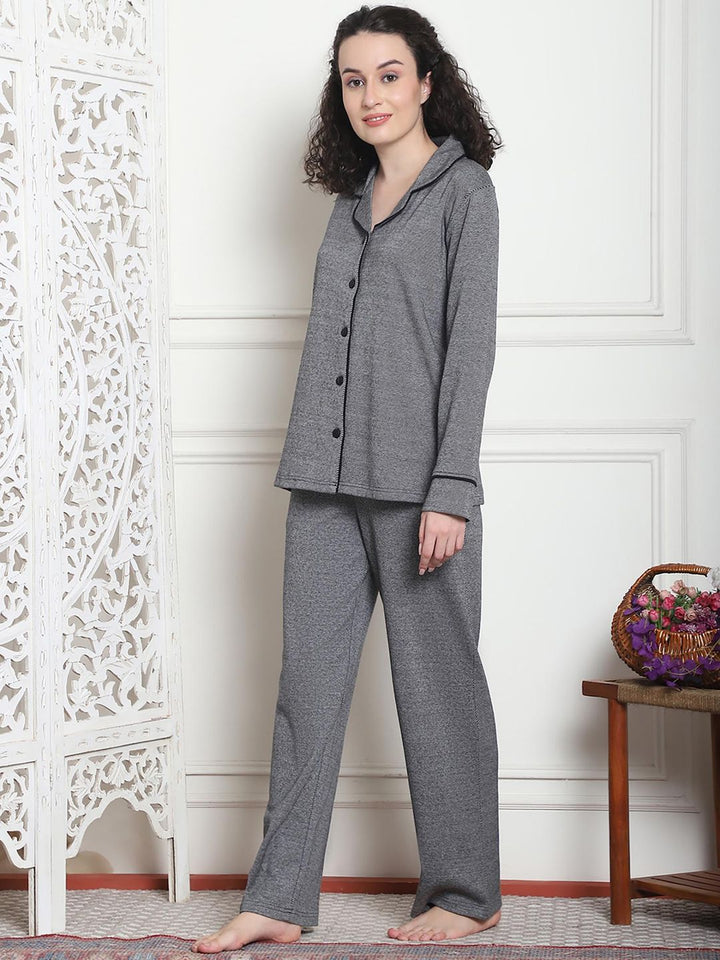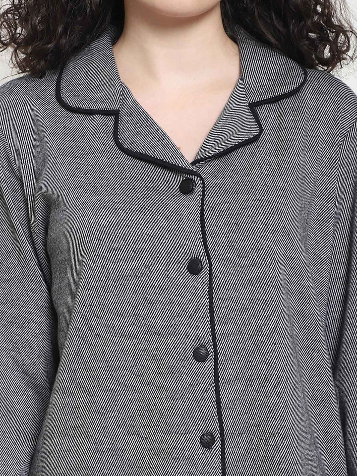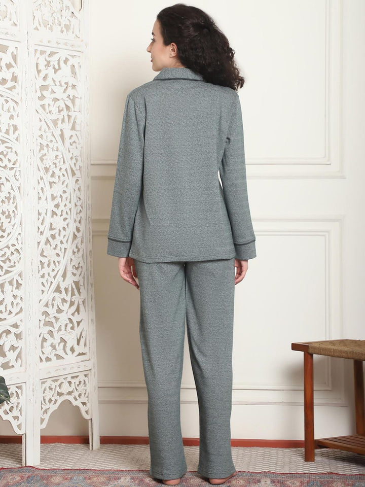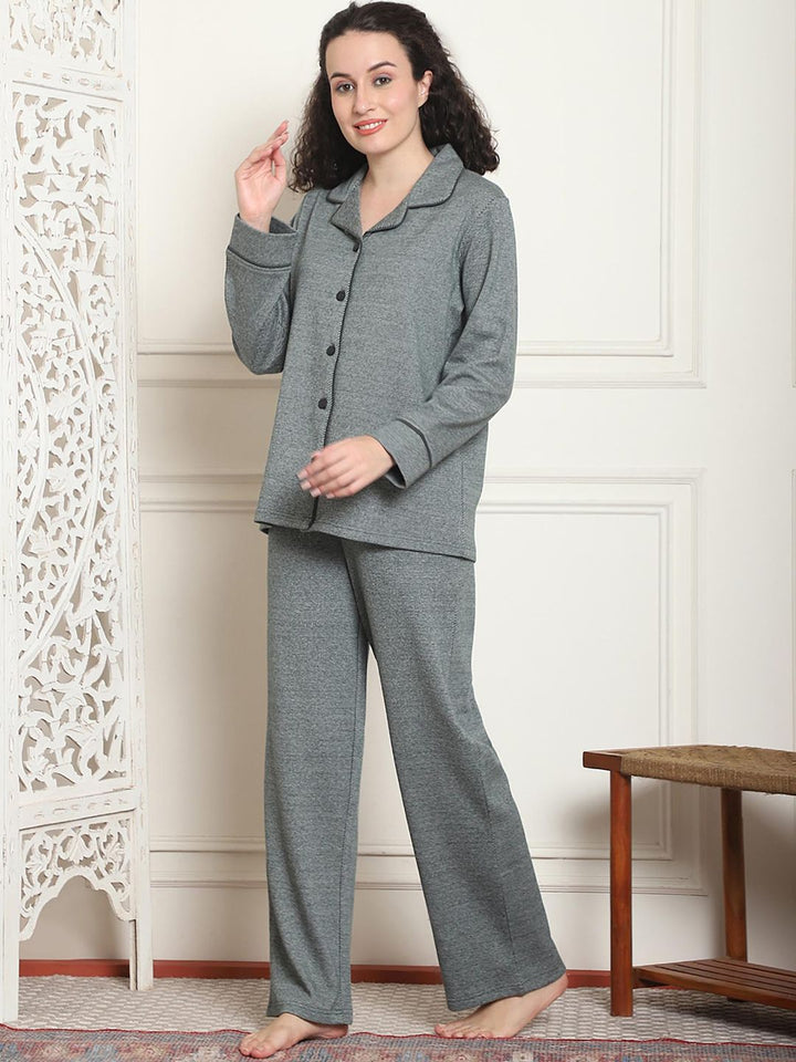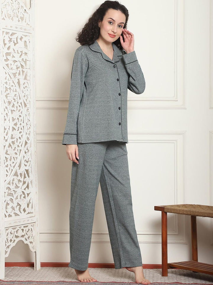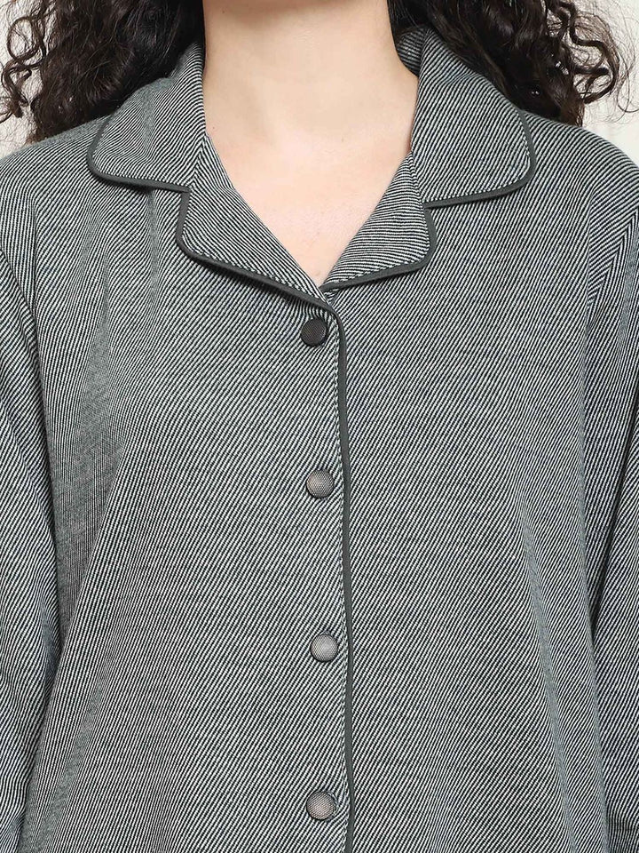 Women Winter Textured Green Shirt with Pajama (Set of 2)