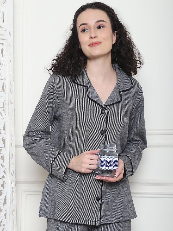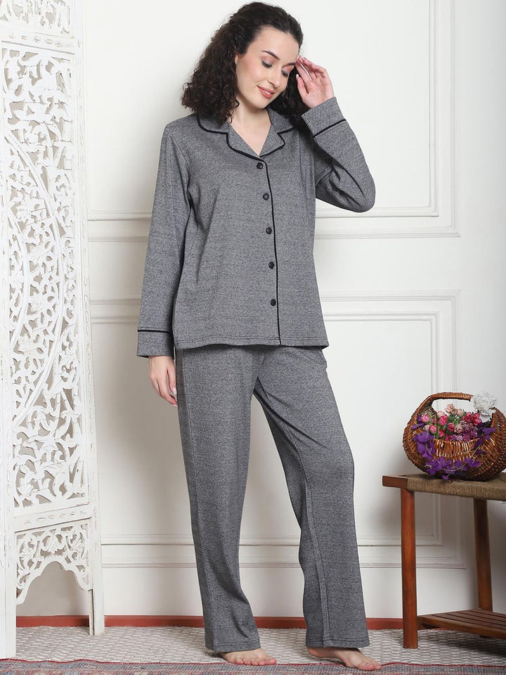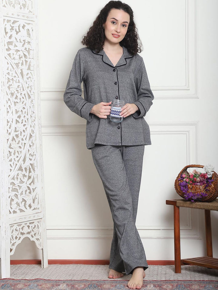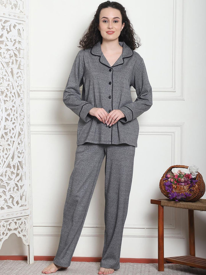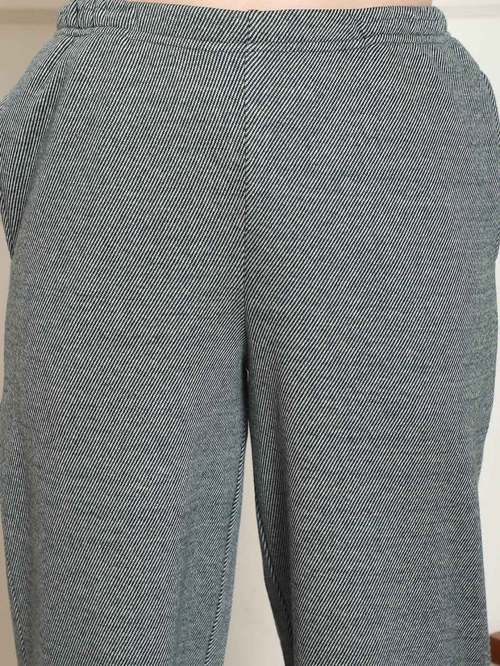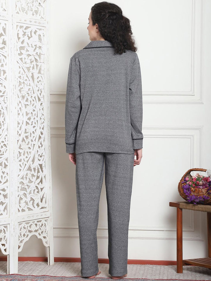 Women Winter Textured Green Shirt with Pajama (Set of 2)